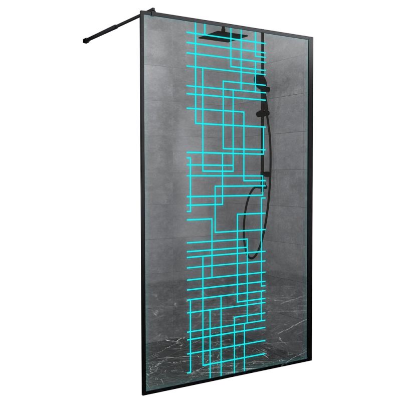 Душевая перегородка Avacan 100 см LB100 стекло (8 мм) с кронштейном в комплекте, чёрный/узор