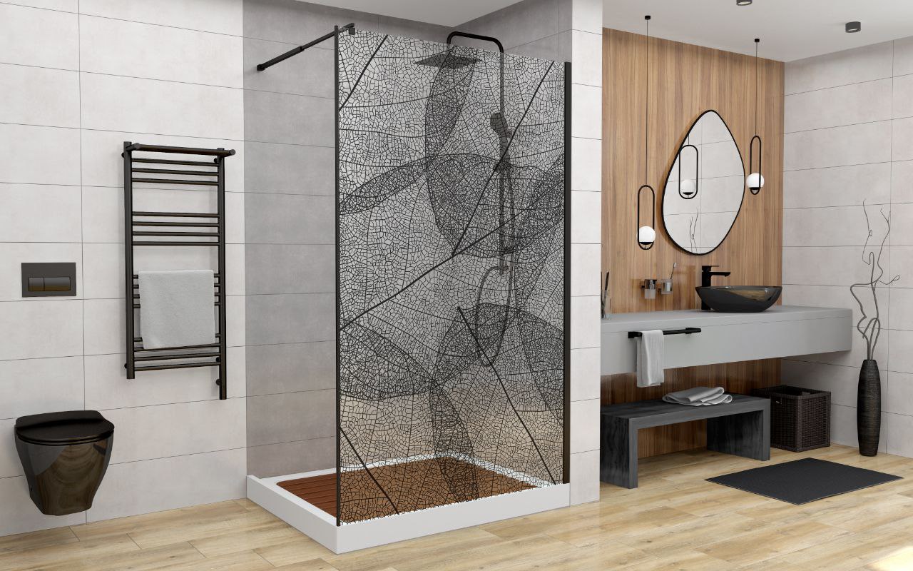 Душевая перегородка Avacan 110 см MB110 стекло (8 мм) с кронштейном в комплекте, чёрный/узор