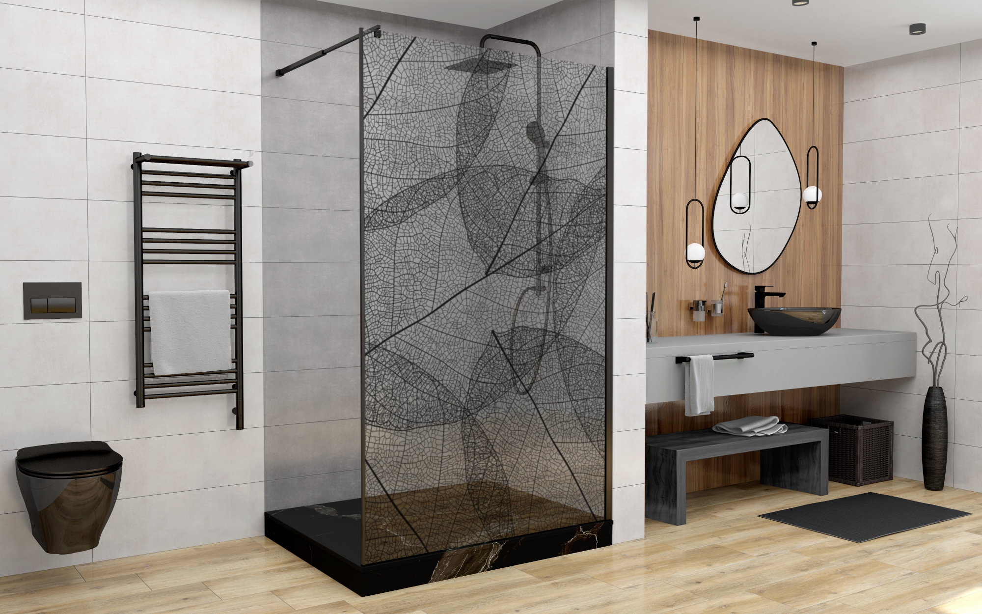 Душевая перегородка Avacan 120 см MB120 стекло (8 мм) с кронштейном в комплекте, чёрный/узор
