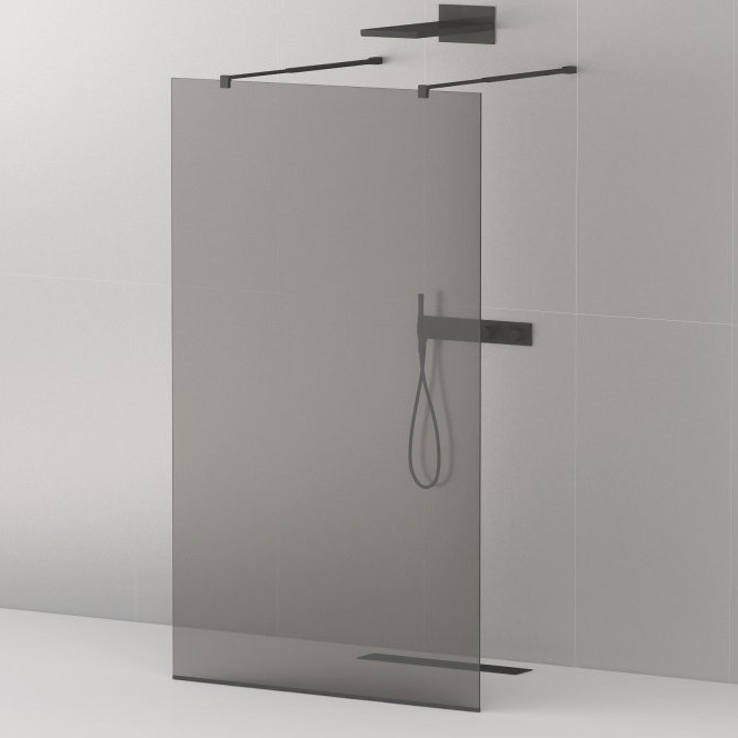 Душевая перегородка Cezares Liberta L-2 1100х1950 мм, профиль - черный, стекло - тонированное, 8 мм, регулировка ширины за счет телескопических кронштейнов. Поддон приобретается отдельно.