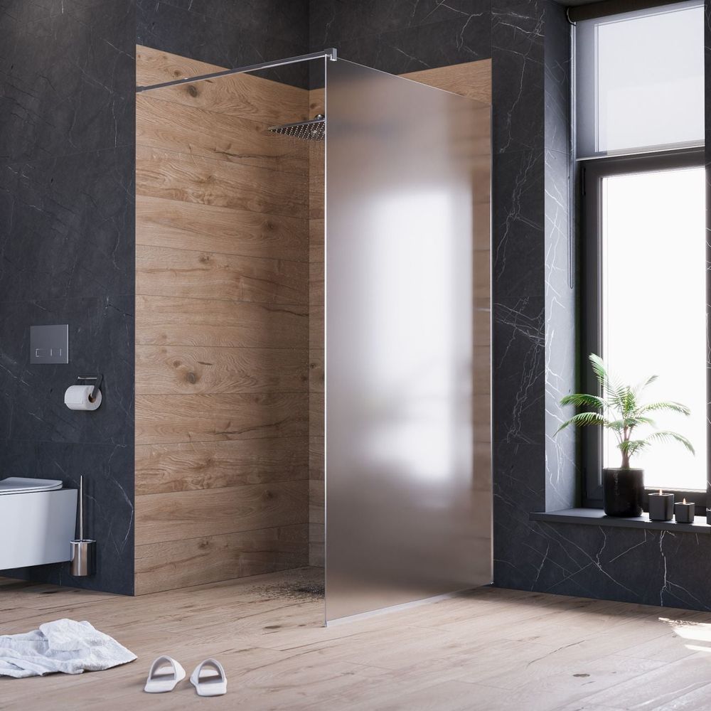 Душевая перегородка Mirsant Walk in с аксессуарами, профиль хром, стекло матовое.
