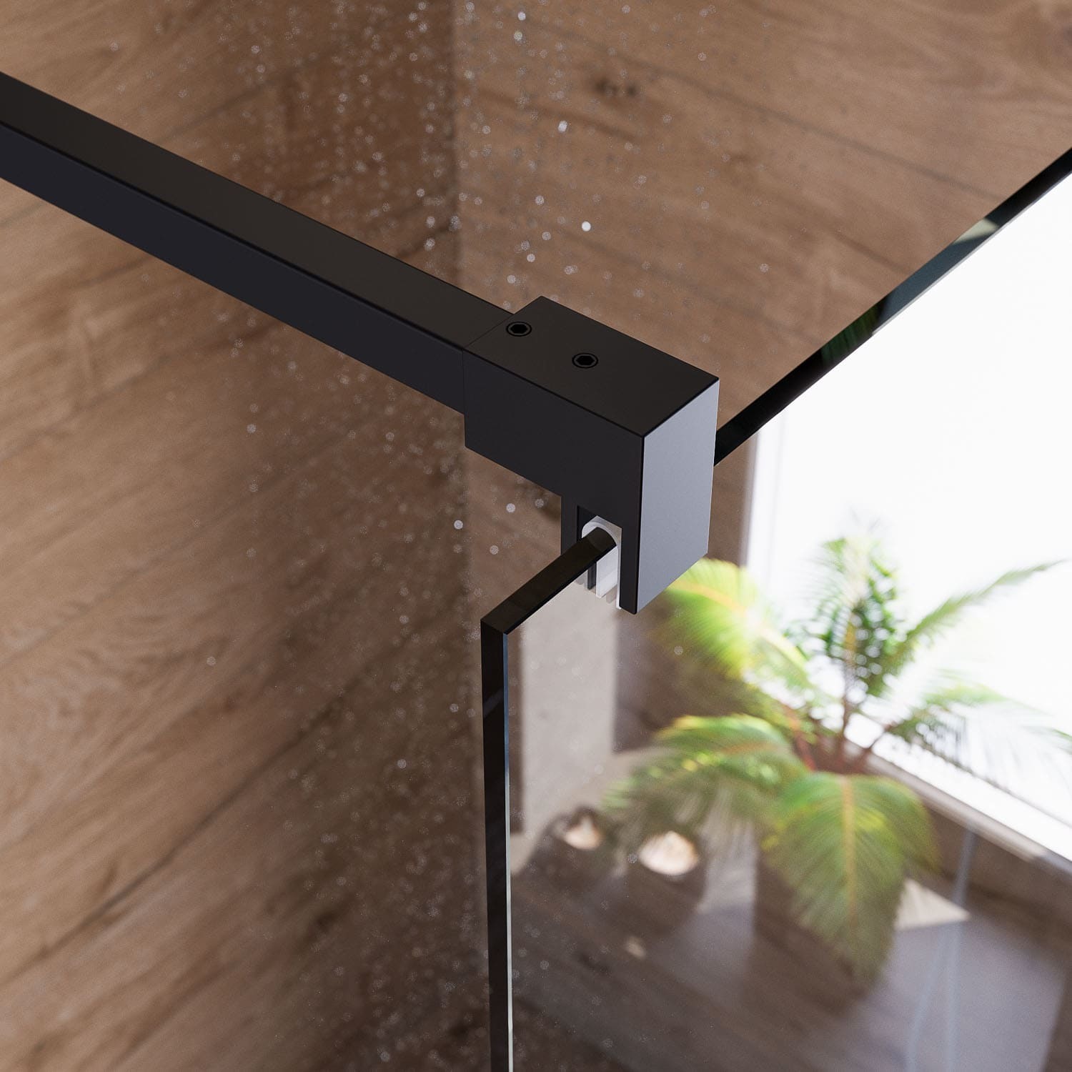 Душевая перегородка Mirsant Walk in с аксессуарами, профиль чёрный, стекло прозрачное.