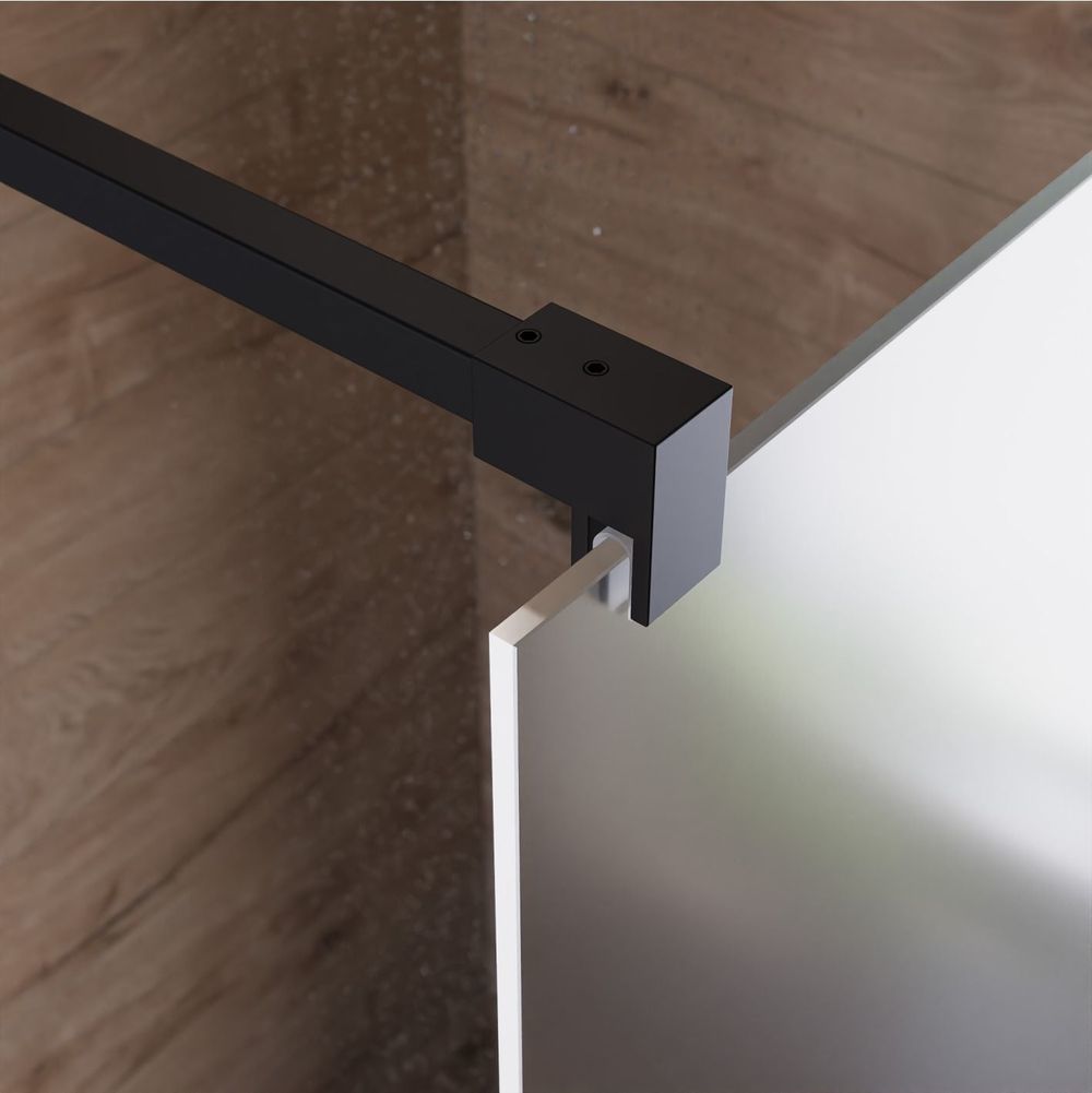 Душевая перегородка Mirsant Walk in с аксессуарами, профиль чёрный, стекло матовое.