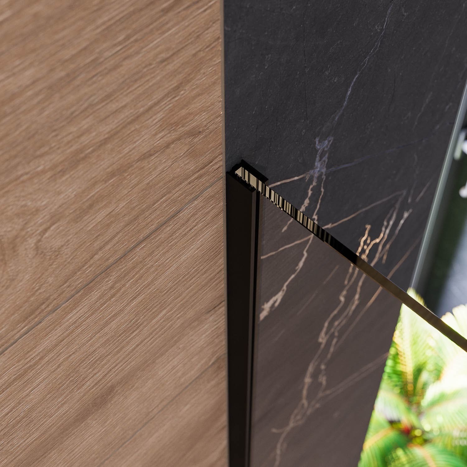 Душевая перегородка Mirsant Walk in с аксессуарами, профиль чёрный, стекло прозрачное.