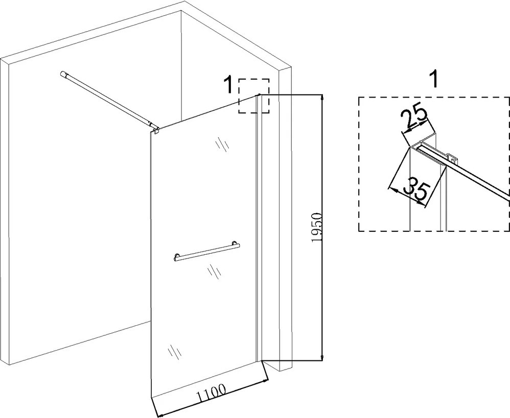 Душевая перегородка Niagara Nova NG-681-11BLACK 1100х1950 мм с кронштейном, профиль - черный матовый, стекло - прозрачное, 6 мм. Поддон приобретается отдельно.