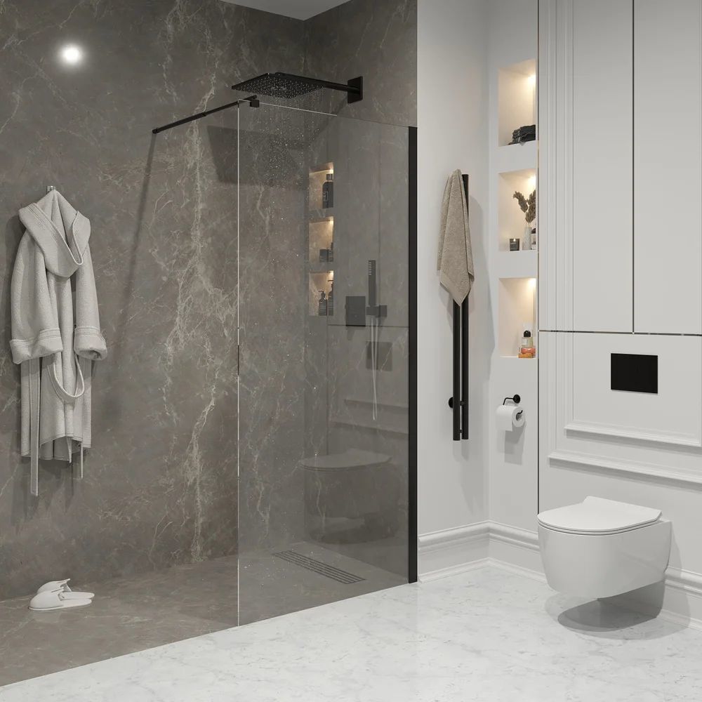 Душевая перегородка Niagara Nova NG-683-70BLACK 700х1950 мм с кронштейном, профиль - черный матовый, стекло - прозрачное, 6 мм. Поддон приобретается отдельно.