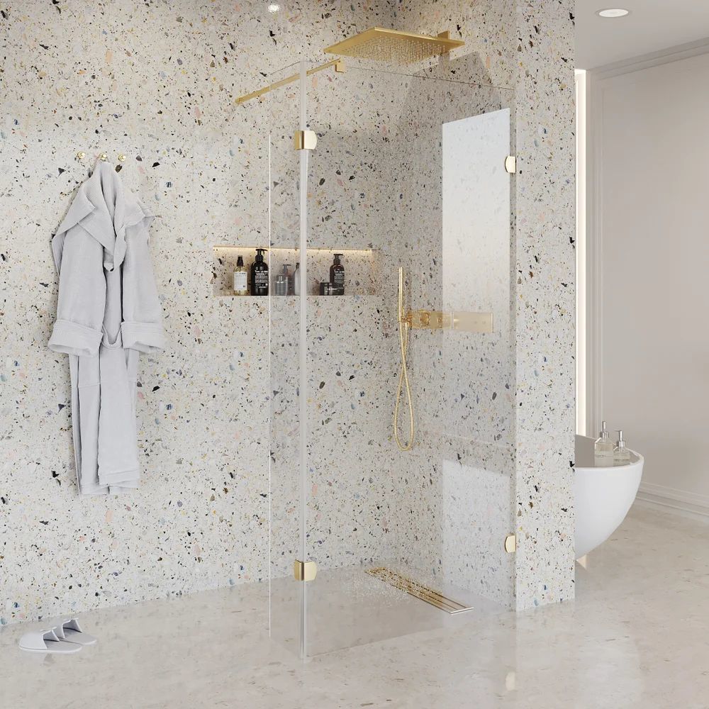 Душевая перегородка Niagara Nova NG-642-90GOLD 900х1950 мм с кронштейном, профиль - холодное золото, стекло - прозрачное, 6 мм. Поддон приобретается отдельно.