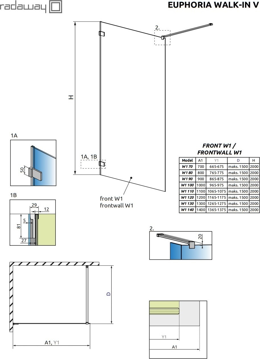 Душевая перегородка Radaway Euphoria Walk-in V 1000х2000 мм. Цвет профиля – хром, цвет стекла – прозрачное, 8 мм.