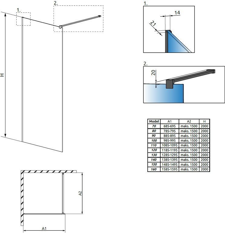 - Безопасное закалённое стекло толщиной 8 мм, согласно стандарту PN:EN 12150:1.