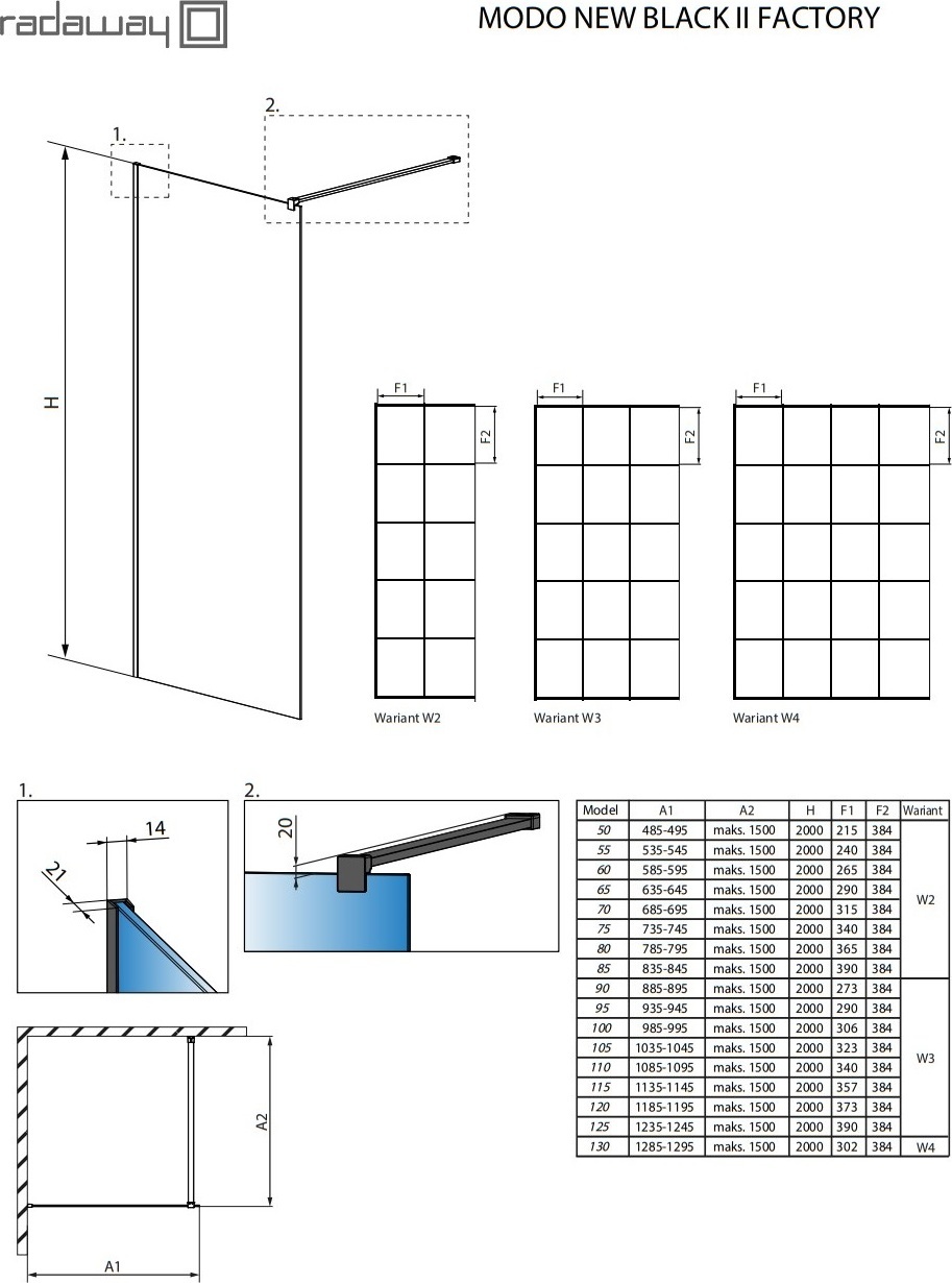 - Безопасное закалённое стекло толщиной 8 мм, согласно стандарту PN:EN 12150:1.