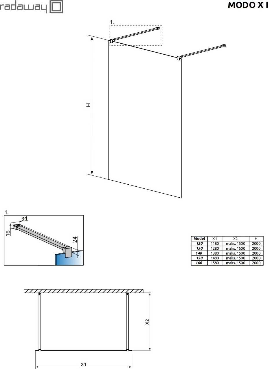 Душевая перегородка Radaway Modo X I 1200х2000 мм. Цвет профиля – хром, цвет стекла – прозрачное, 10 мм.