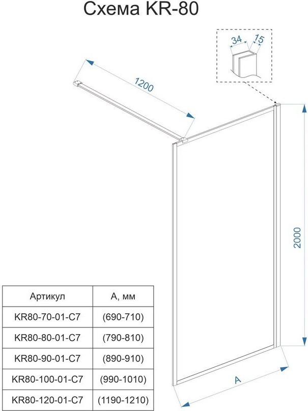 Описание Душевая перегородка Veconi KR80-100-01-C8