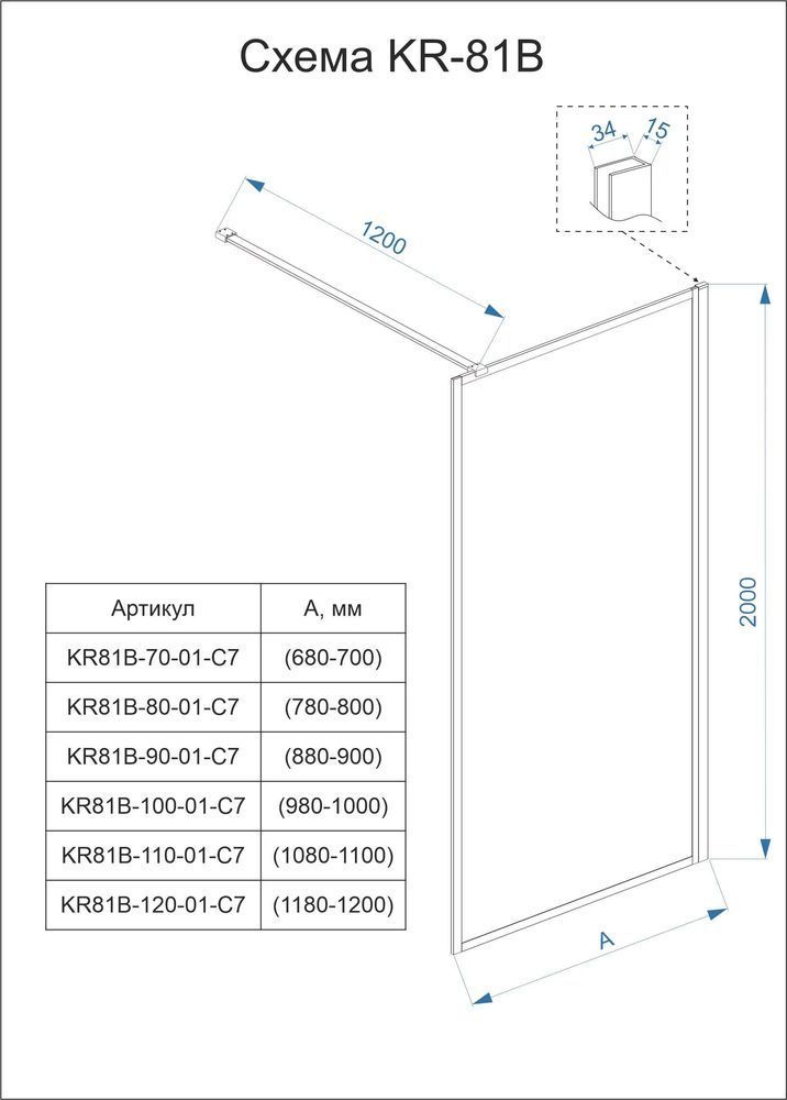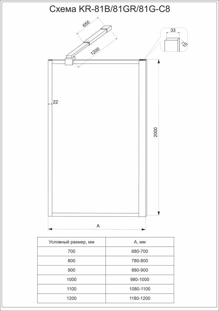 Описание Душевая перегородка Veconi KR81B-100-01-C8