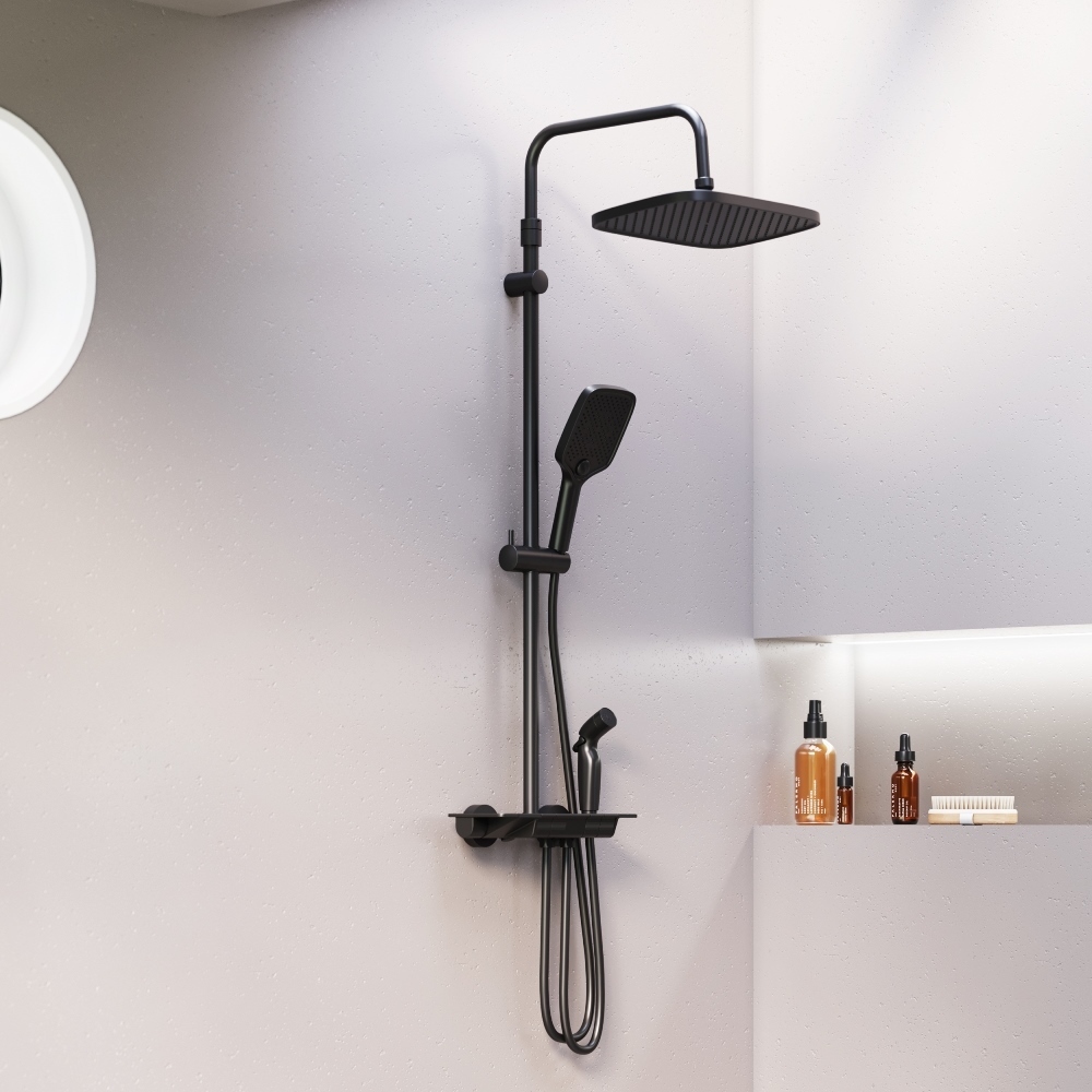 Душевая система c термостатом Damixa Gala 953770300 и гигиеническим душем, чёрный