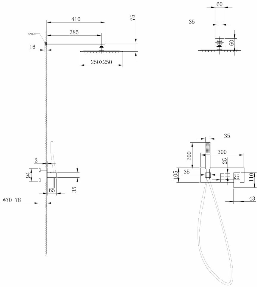 Душевая система для душа Abber Daheim AF8218NG, материал - латунь, цвет - никель.