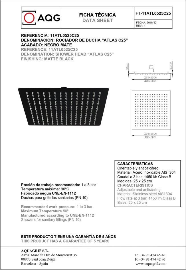 Характеристики душевая система без излива AQG (19BOLEC21705)