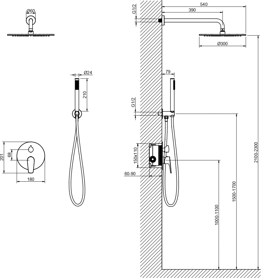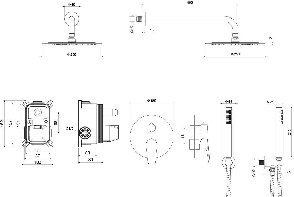 Характеристики душевая система без излива Aquatek (AQ1172BGM)