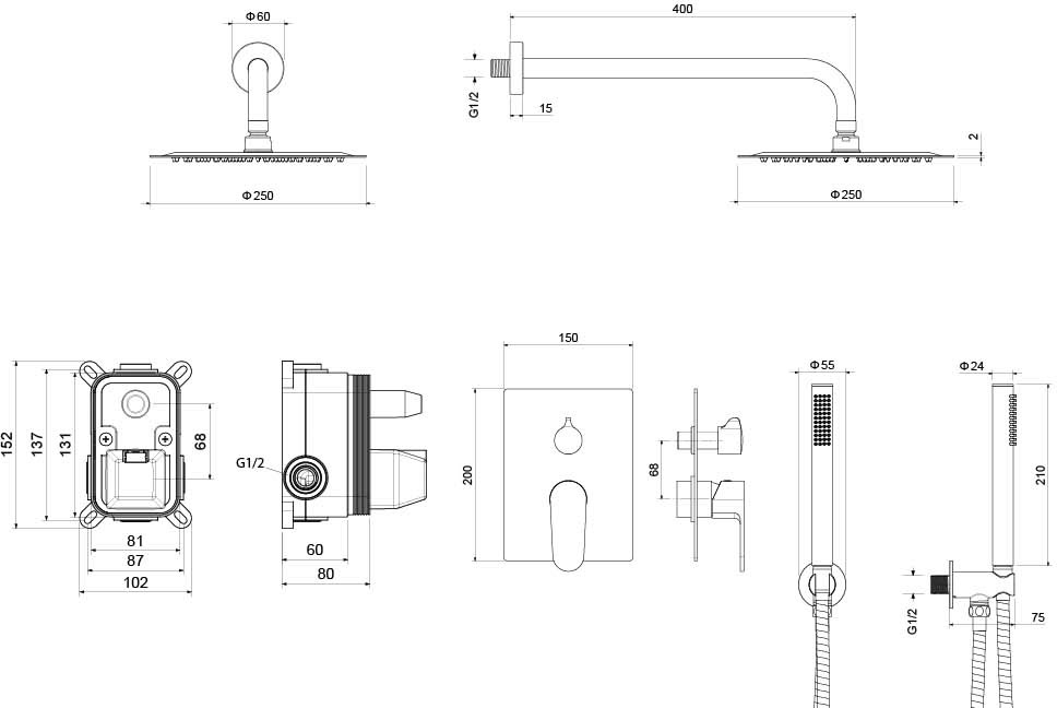 Характеристики душевая система без излива Aquatek (AQ1272BG)
