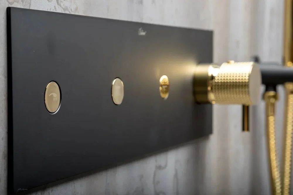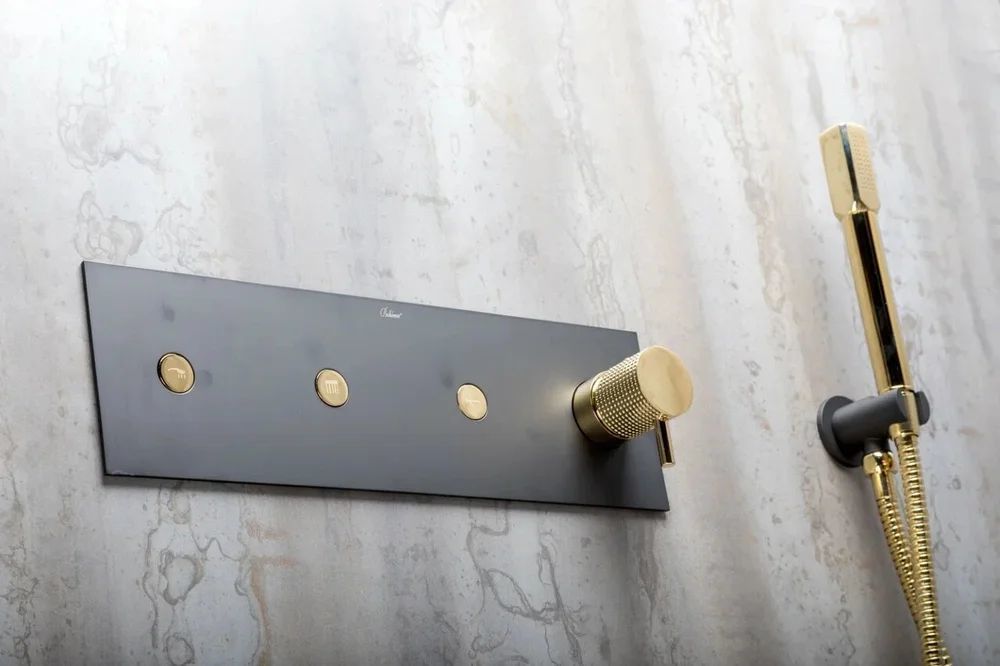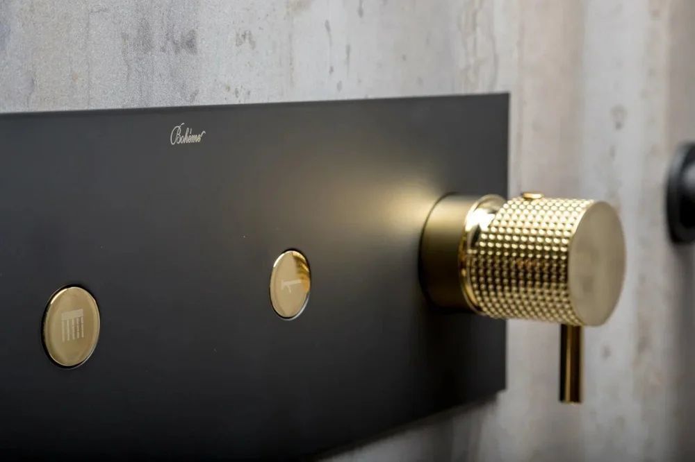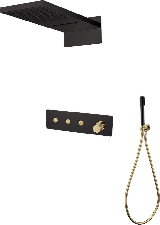 Душевая система для душа Boheme Fusion 130-BG со скрытой частью, материал - латунь, цвет чёрный/золото.