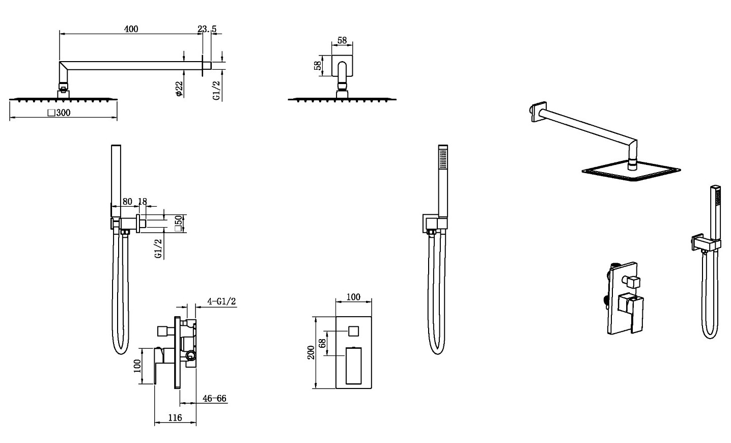 Характеристики душевая система без излива Boheme (474-3-BRB)