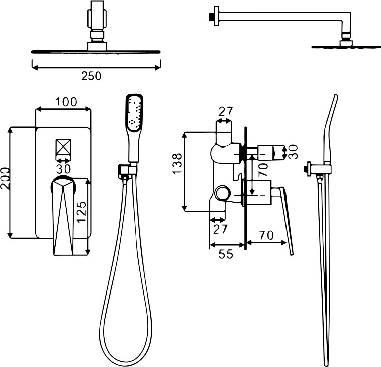 Душевая система для душа Boheme Venturo 374-B со скрытой частью, материал - латунь, цвет black chrome