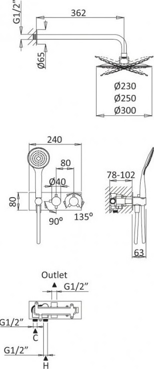 - верхний душ ,