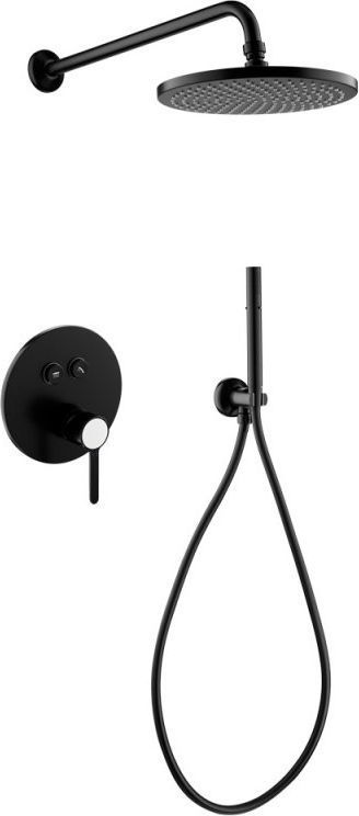 - Оснащение: встраиваемый смеситель с кнопочным управлением, верхний душ диаметр 25 см, ручной душ со шлангом, штуцером и держателем