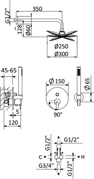 - Форма верхнего душа: круглая
