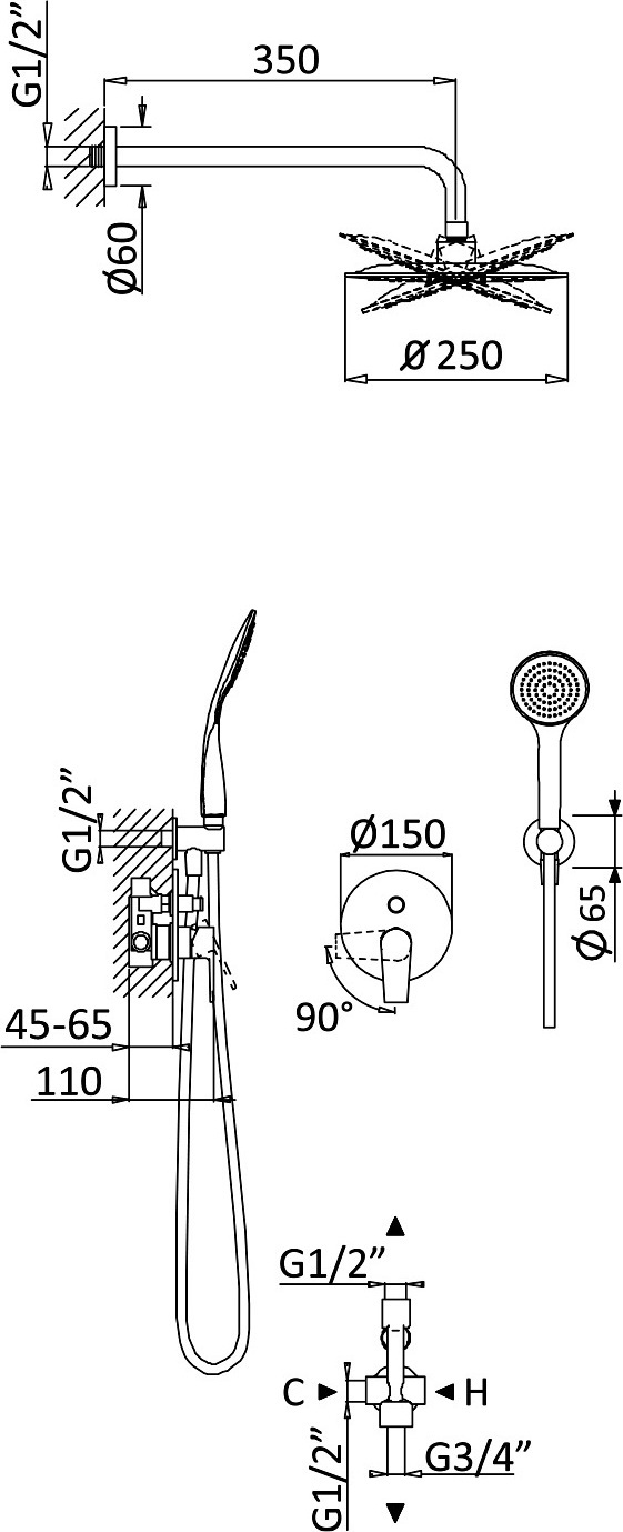 - верхний душ ,