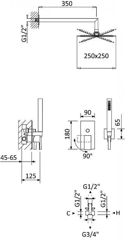 Характеристики душевая система без излива Cezares (PORTA-DSIPQ-25-01)