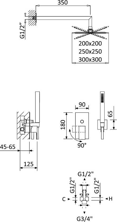 Характеристики душевая система без излива Cezares (PORTA-DSIPQ-30-01)
