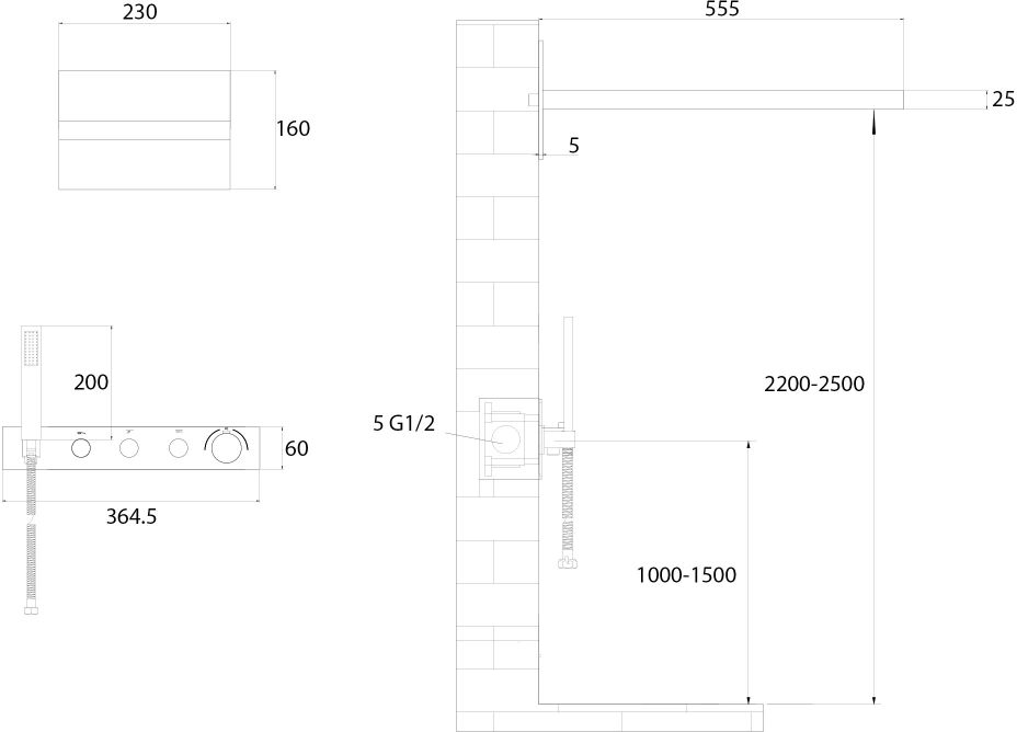 Душевая система для душа с термостатом Abber Rund AF8752B, материал - латунь, цвет - черный матовый.