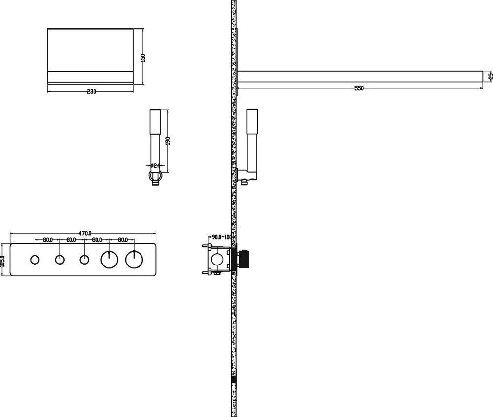 Душевая система для душа с термостатом Boheme Fusion 131 со скрытой частью, материал латунь, цвет чёрный матовый