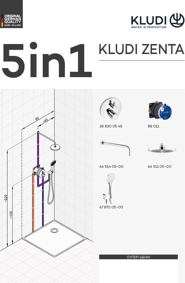 Характеристики душевая система без излива Kludi (388320545)