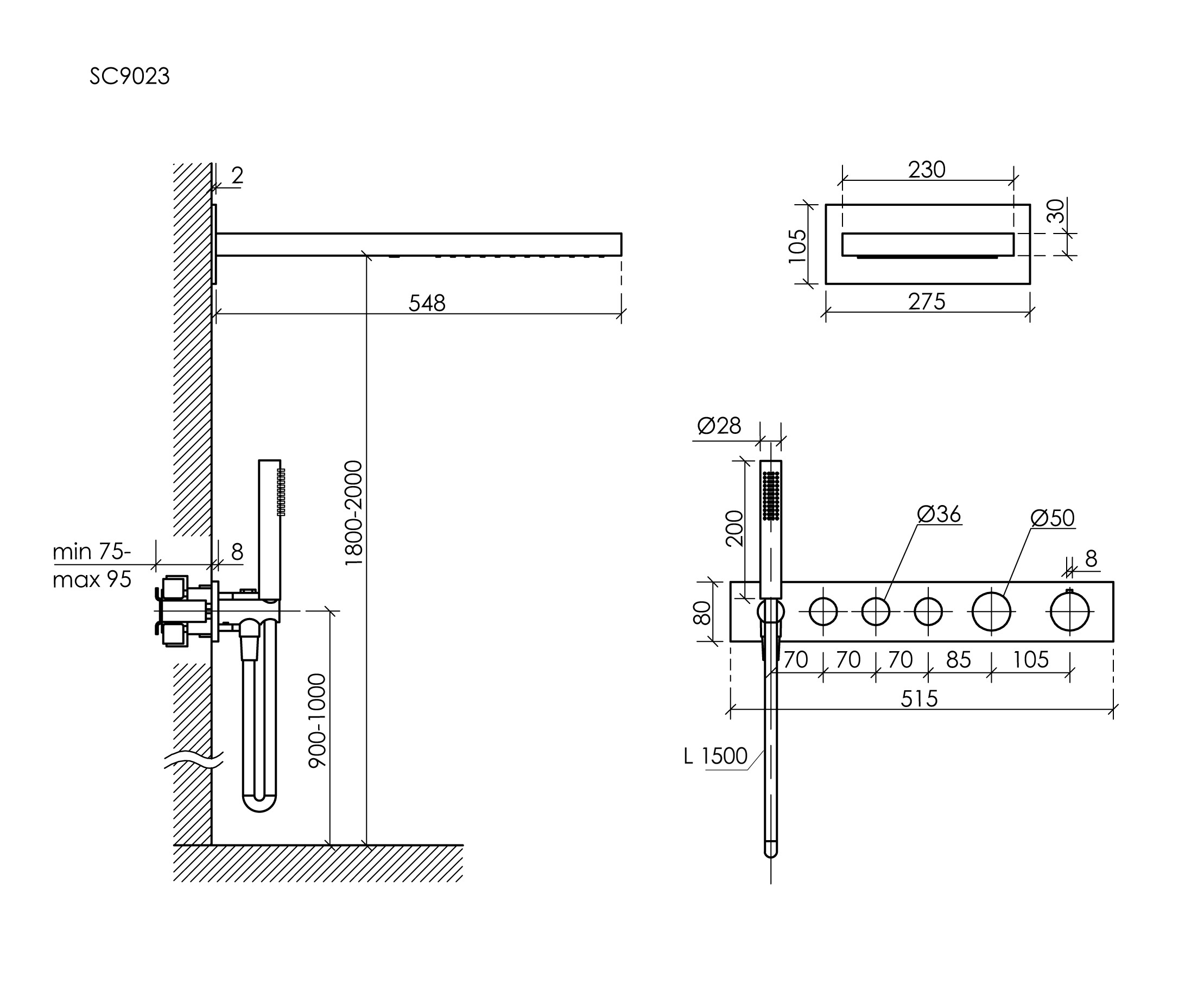 Характеристики душевая система без излива Sancos (SC9023MB)