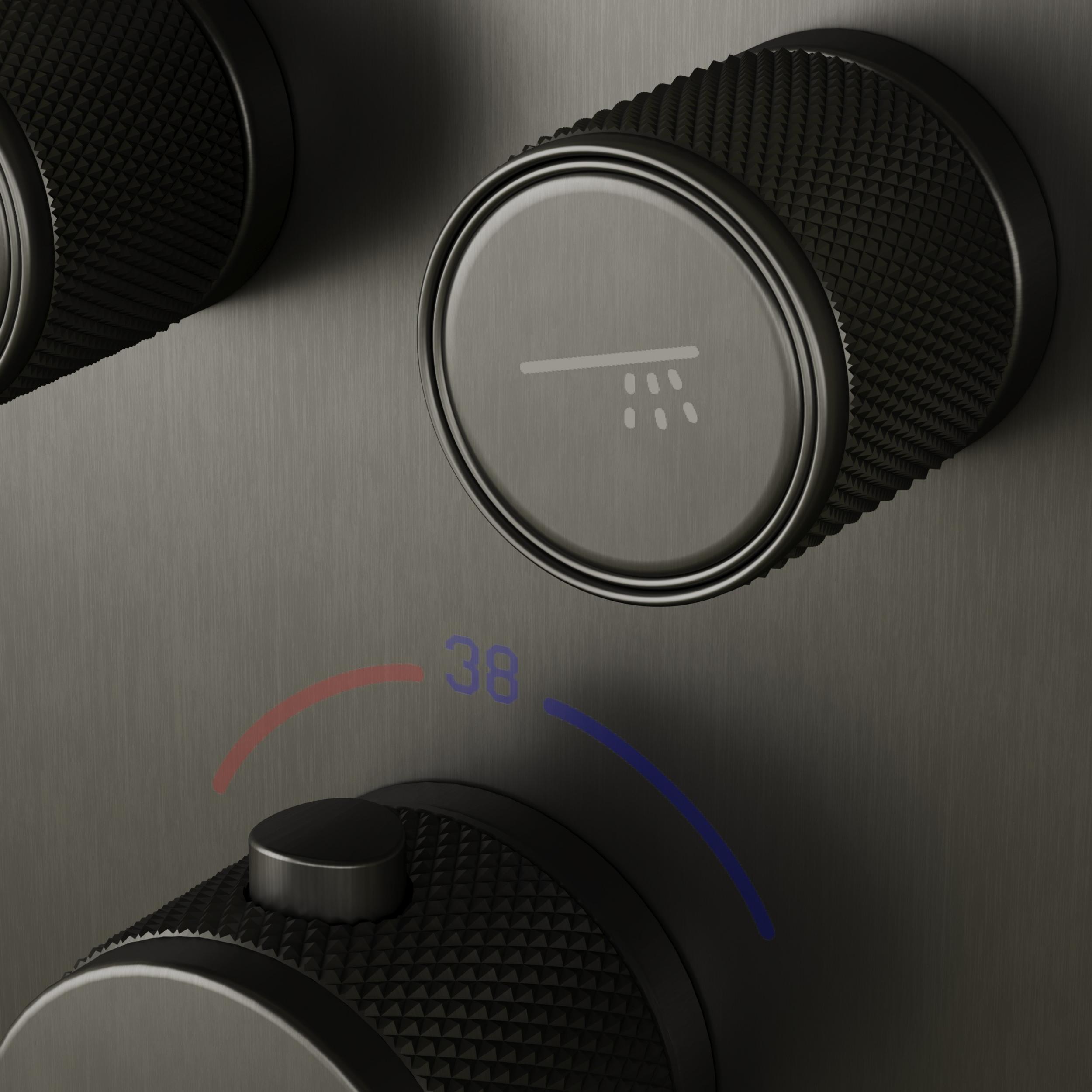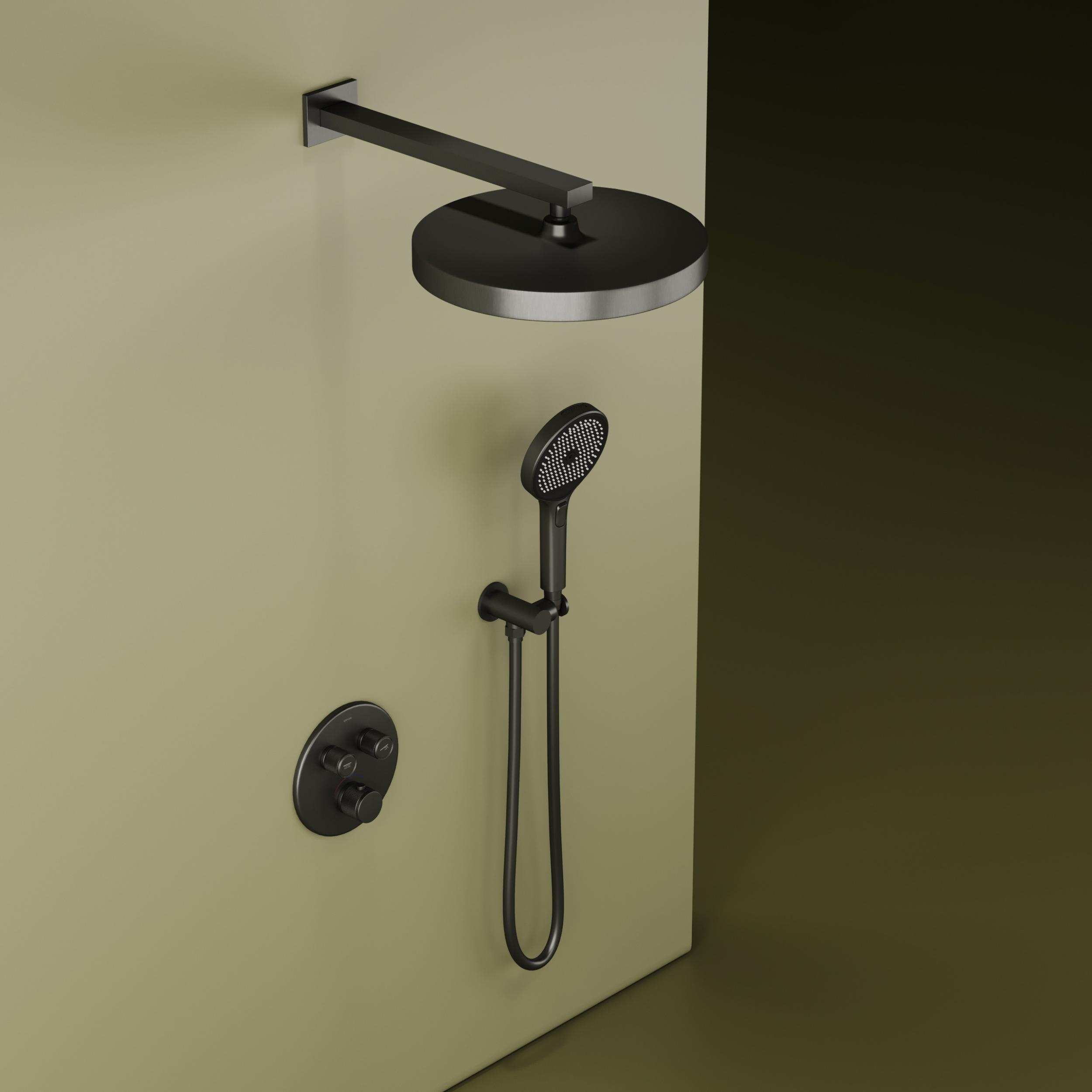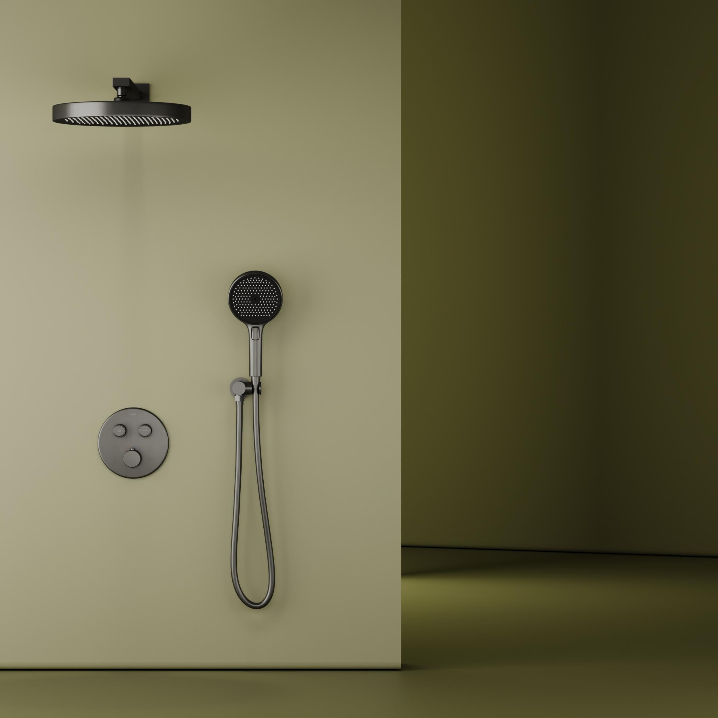 Душевая система для душа с термостатом Sancos Space SC3006GMG со скрытой частью, материал - латунь, цвет - вороненая сталь.