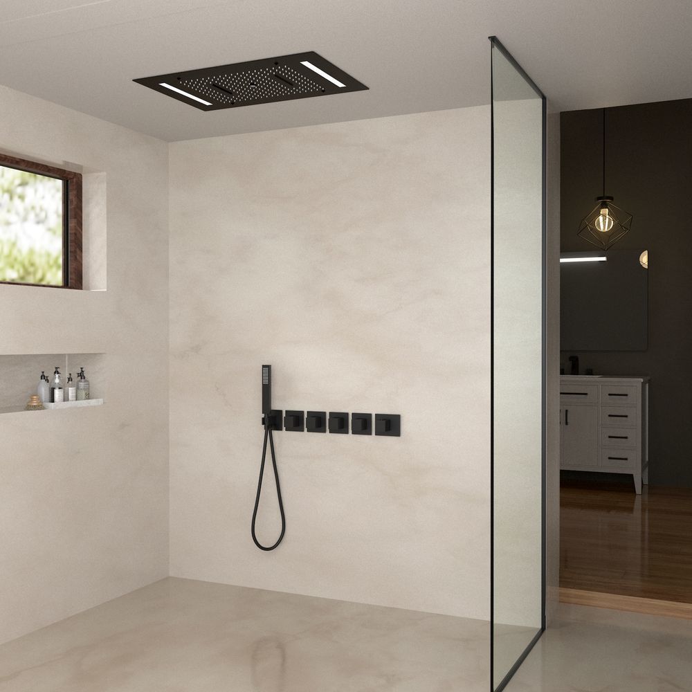 Встраиваемая душевая система с термостатом Timo Petruma 5229 относится к премиальному сегменту, предназначена для монтажа в полой или твердой стене. Термостатический картридж поддерживает стабильную температуру воды, обеспечивая максимально комфортные условия для принятия водных процедур. Встроенный потолочный душ большого размера создает имитацию проливного дождя, вода обливает человека целиком. Регулируя напор воды можно получить массажное воздействие, что очень полезно для здоровья. Основные преимущества встроенной системы: элегантный внешний вид, все коммуникации и крепления спрятаны в стену и потолок, снаружи видны только декоративные элементы.