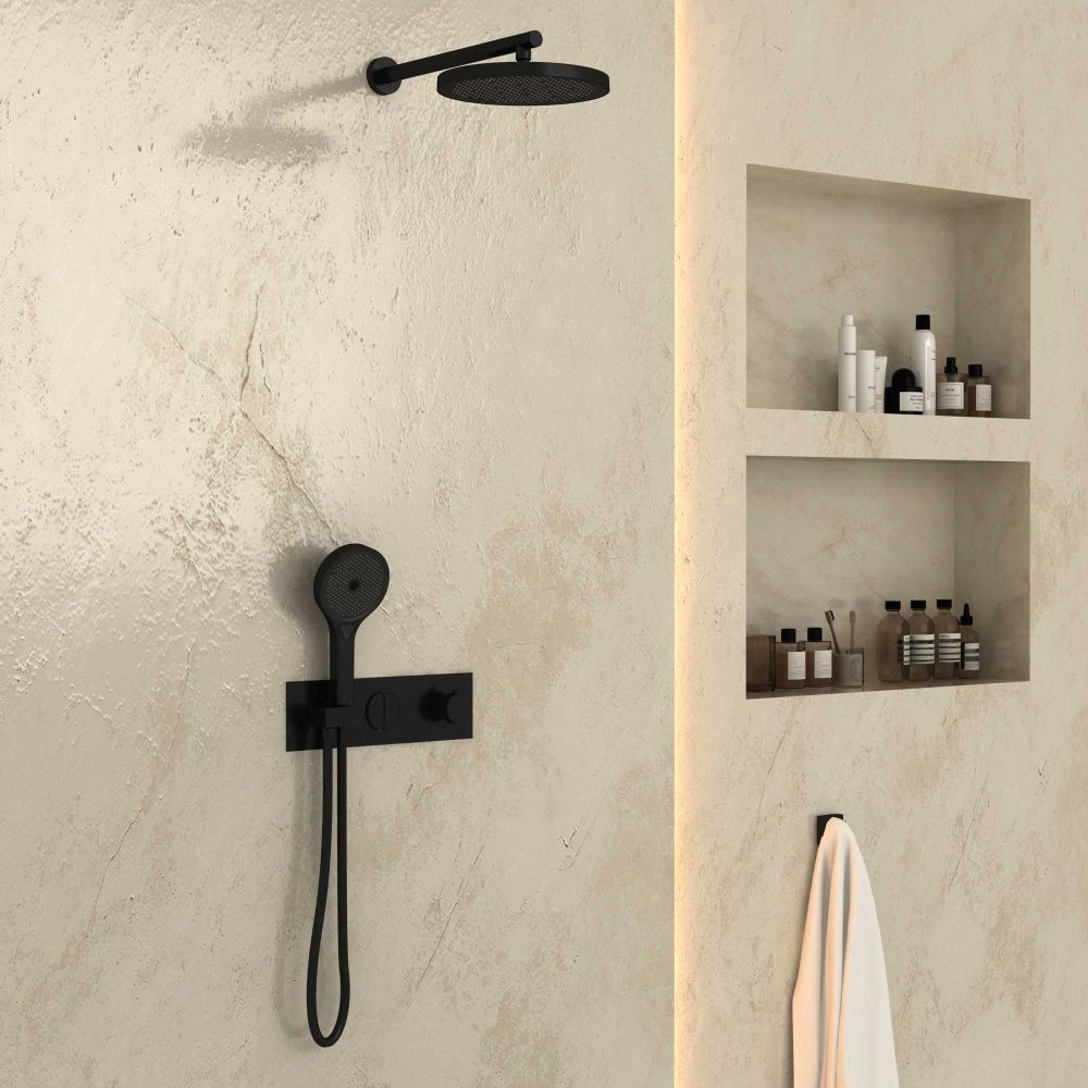 Душевая система для душа с термостатом Vincea VSFW-422T2MB, черный