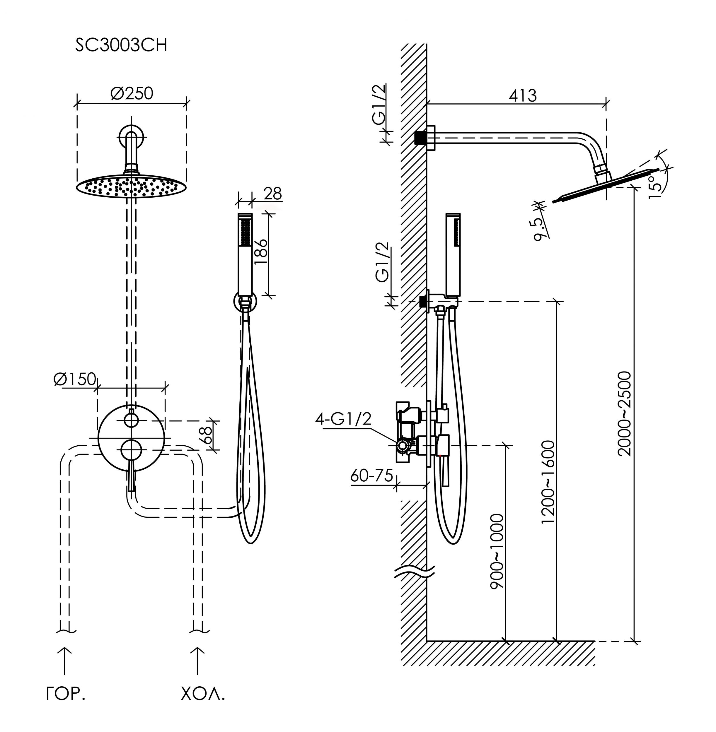 Характеристики душевая система без излива Sancos (SC3003MB)