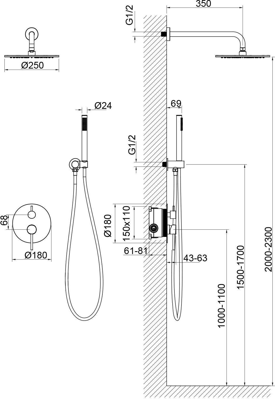 - Душевая система сделана из латуни класса А