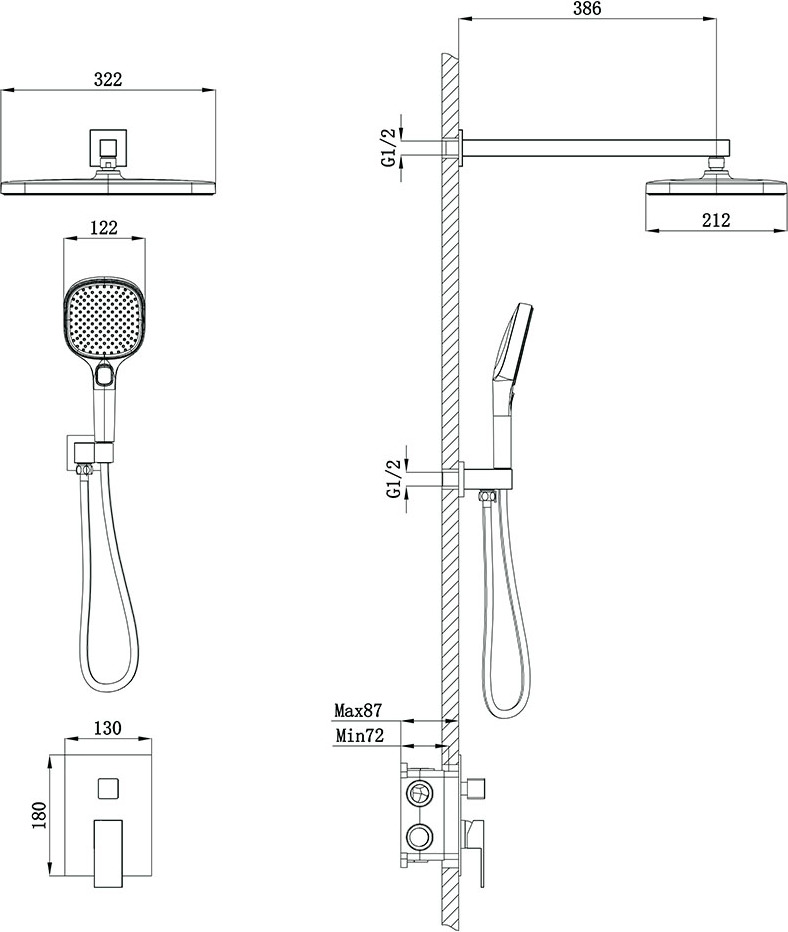 Характеристики душевая система без излива Veconi (AV-410-GR-C4)