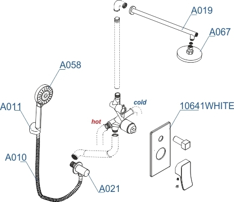 Характеристики душевая система без излива WasserKraft (A16067WHITE)