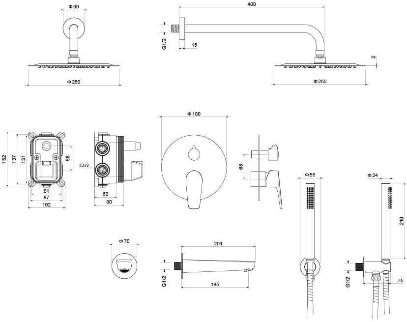 - верхний душ ,