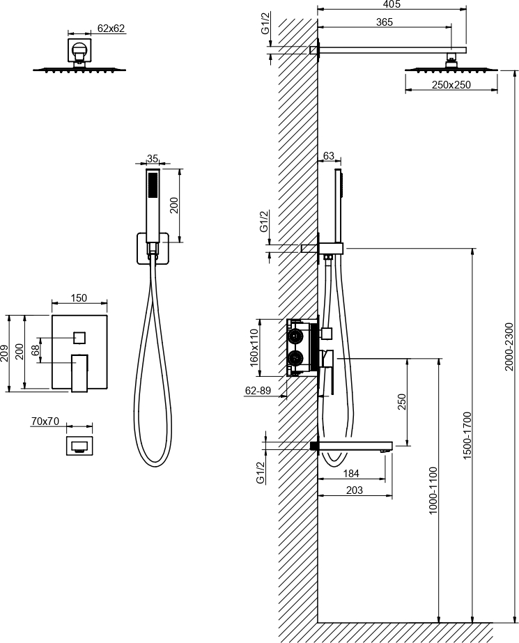 Характеристики душевая система с изливом Aquatek (AQ1673CR)