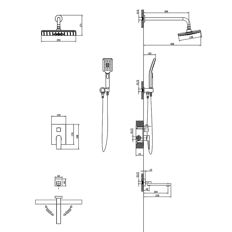 Душевая система для ванны Azario Arida AZ-K7354GR (со скрытой частью) графит