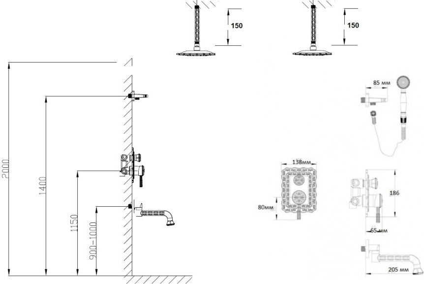 Характеристики душевая система с изливом Bronze de Luxe (10137/1F)