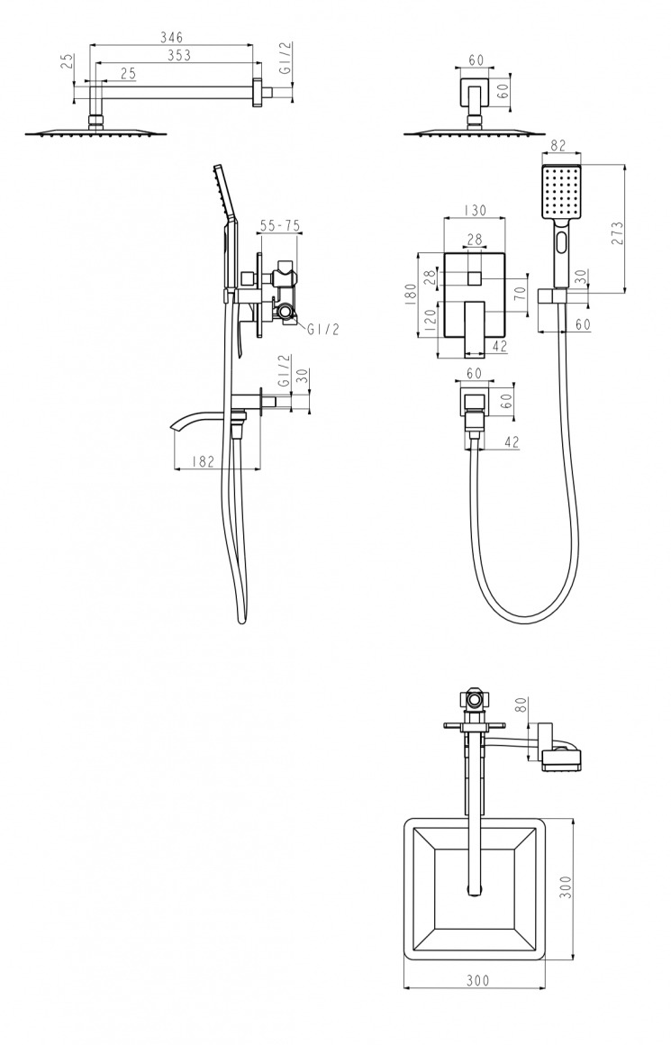 Характеристики душевая система с изливом Grocenberg (GB5007CR)