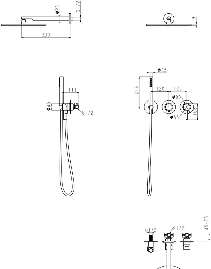 Душевая система скрытого монтажа для душа с 2-функциями