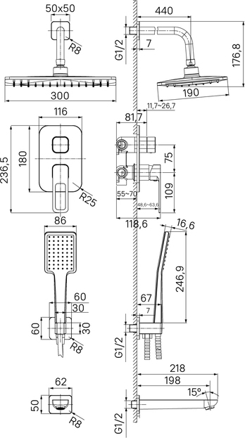 Характеристики душевая система с изливом Iddis (SLISB03i68)