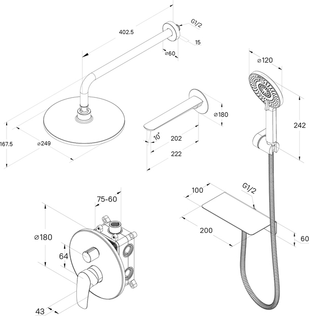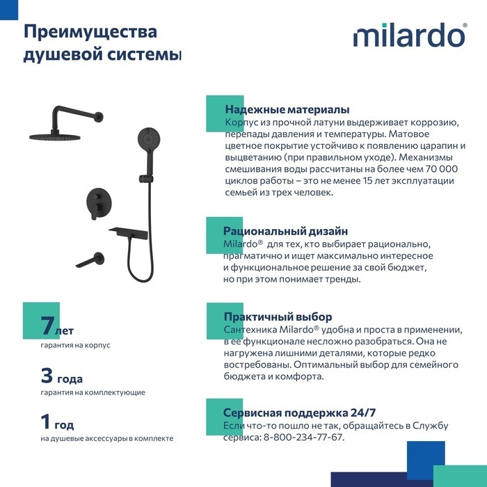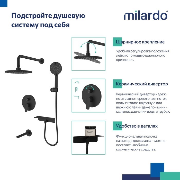 Характеристики душевая система с изливом Milardo (RORBL03M68)